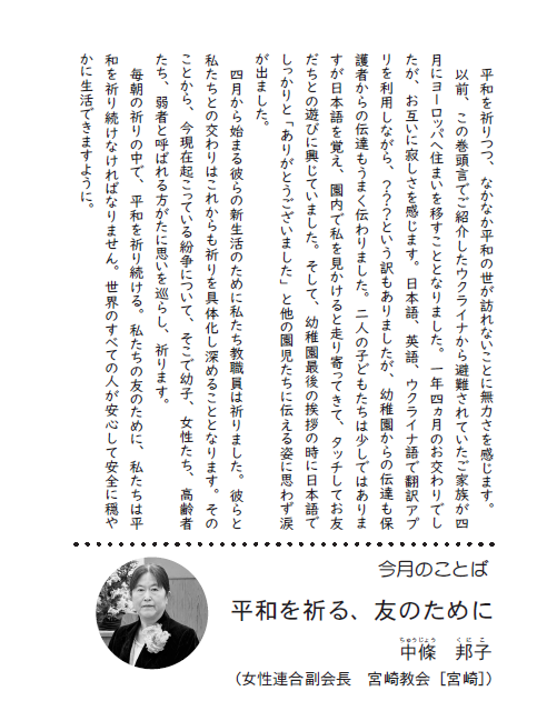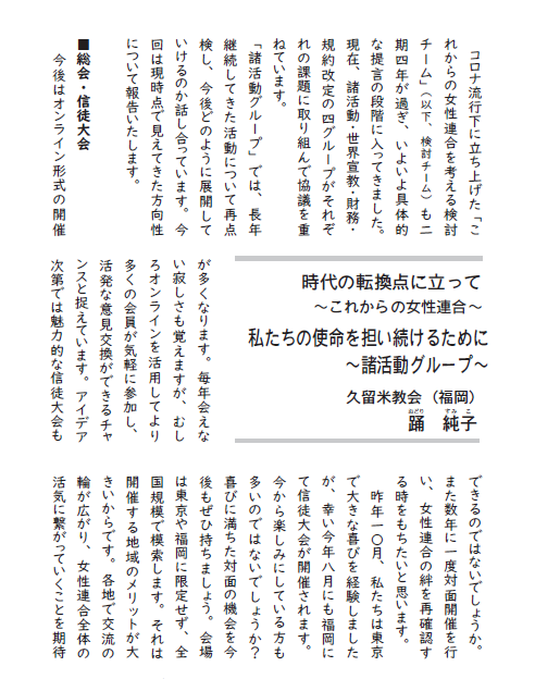 今月のことば・もくじ・時代の転換点に立って・女性連合のひろば
