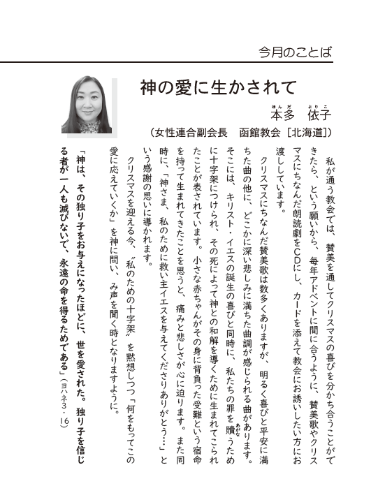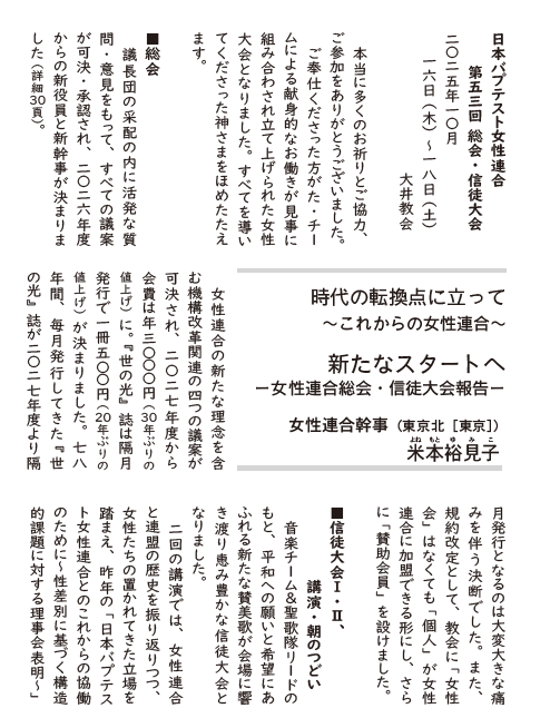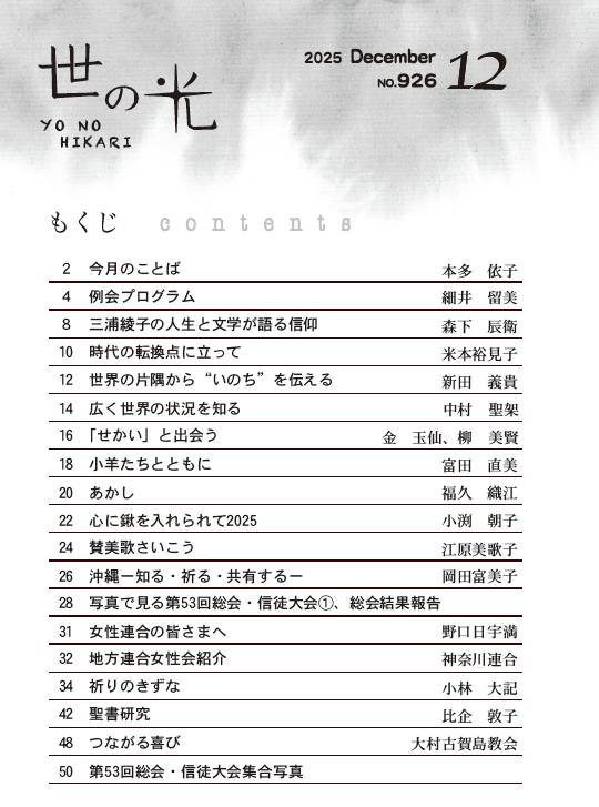 今月のことば・もくじ・時代の転換点に立って・女性連合のひろば