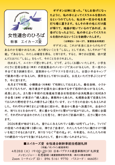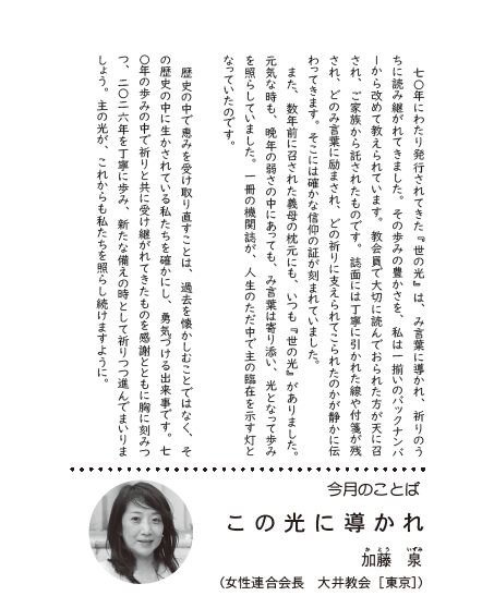 今月のことば・もくじ・時代の転換点に立って・女性連合のひろば